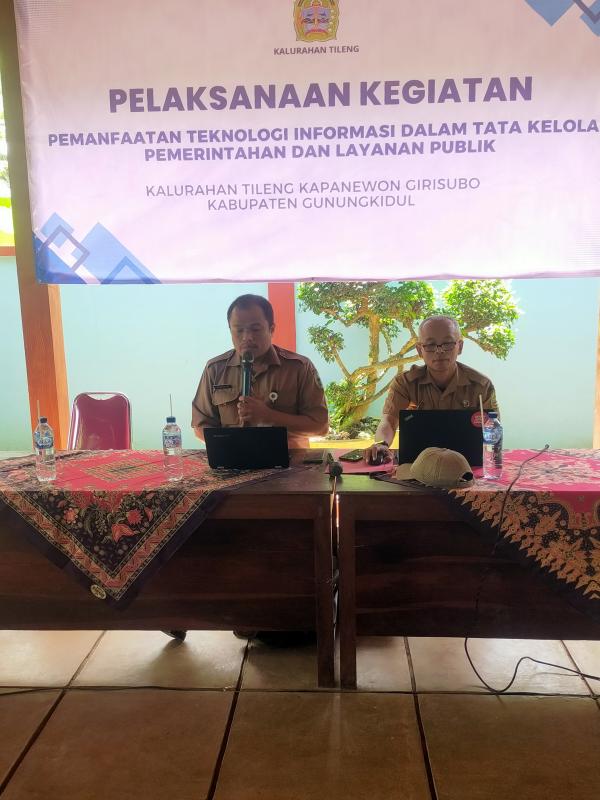 Pelaksanaan kegiatan dalam pemanfaatan teknologi informasi dalam tata kelola pemerintahan dan layanan publik di Kalurahan Tileng, Kapanewon Girisubo dilaksanakan di pendopo sawah pada hari selasa 04 november 2025.