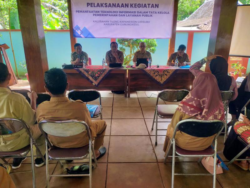 Pelaksanaan kegiatan dalam pemanfaatan teknologi informasi dalam tata kelola pemerintahan dan layanan publik di Kalurahan Tileng, Kapanewon Girisubo dilaksanakan di pendopo sawah pada hari selasa 04 november 2025.