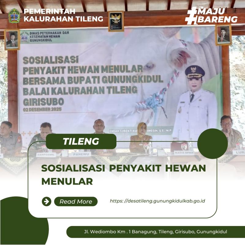 Selasa, 02 Desember 2025 – Pemerintah Kabupaten Gunungkidul kembali menunjukkan komitmennya dalam menjaga kesehatan ternak dan ketahanan pangan daerah. Bertempat di Balai Kalurahan Tileng, Kapanewon Girisubo, Kabupaten Gunungkidul telah diselenggarakan kegiatan penting yaitu Sosialisasi Penyakit Hewan Menular. Acara yang merupakan kolaborasi antara Pemerintah Kalurahan Tileng dengan Dinas Peternakan dan Kesehatan Hewan Kabupaten Gunungkidul ini dimulai tepat pukul 08.30 WIB.